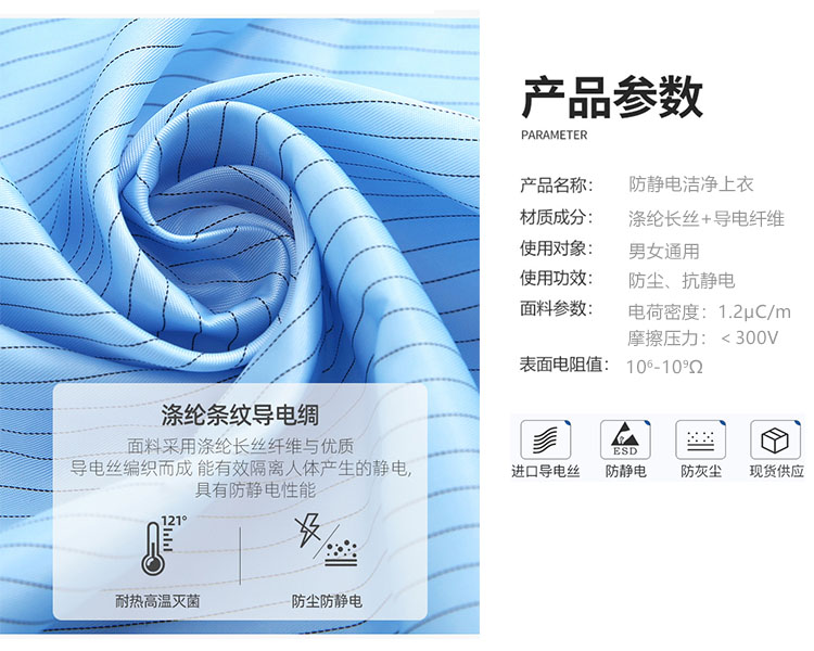 防靜電夾克上衣是由專業(yè)的防靜電面料制作,采用滌綸長(zhǎng)絲與高性能導(dǎo)電纖維編織而成,具有高效、永久的防靜電、防塵性能,能有效釋放人體靜電荷,從而滿足高級(jí)別無(wú)塵環(huán)境的要求。廣泛應(yīng)用于電子電器、食品、生物制藥、實(shí)驗(yàn)室等無(wú)塵車間及產(chǎn)線。