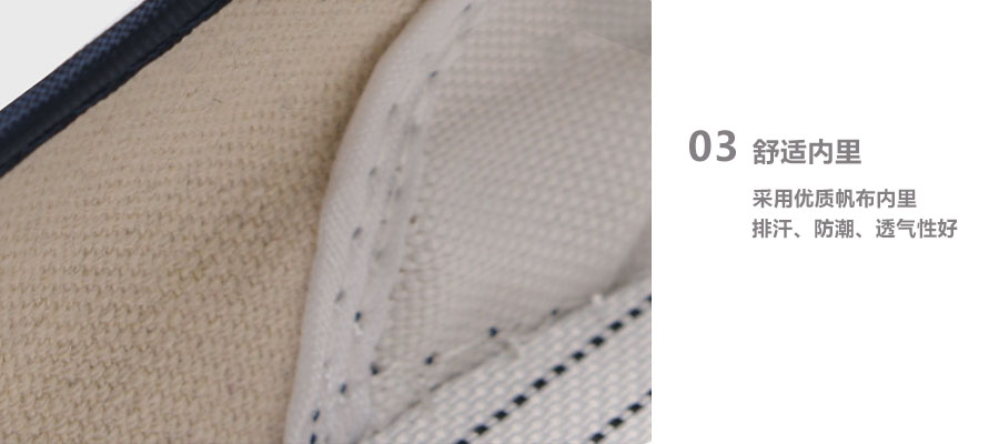 3、鞋面采用帆布面料,舒適透氣,防塵效果好,易于清洗;