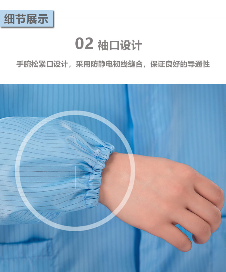 防靜電無(wú)塵分體服采用的導(dǎo)電綢面料除了具有良好的防靜電功能外,其面料同時(shí)還具有本身不發(fā)塵、不沾塵、阻隔性好,高密度等功能,一般應(yīng)用于實(shí)驗(yàn)室、無(wú)塵凈化車間里。根據(jù)潔凈室的要求,可以選擇0.5CM條紋、0.5CM網(wǎng)格、0.25CM網(wǎng)格等導(dǎo)電綢面料的無(wú)塵服。