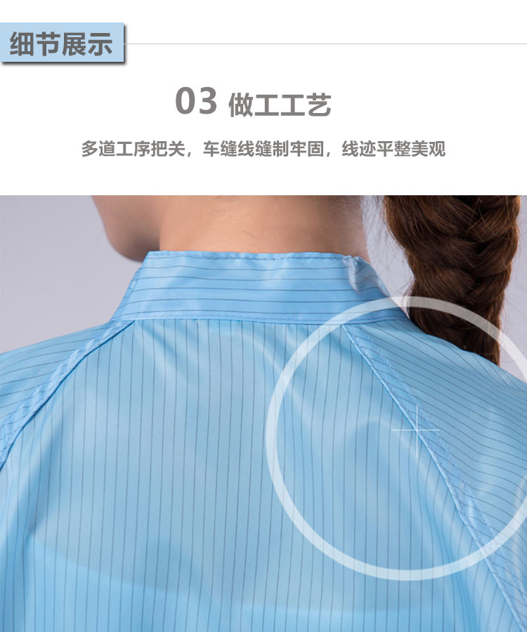 防靜電無(wú)塵分體服是由專業(yè)的防靜電面料制作,采用滌綸長(zhǎng)絲與高性能導(dǎo)電纖維編織而成,具有高效、永久的防靜電、防塵性能,能有效釋放人體靜電荷,從而滿足高級(jí)別無(wú)塵環(huán)境的要求。廣泛應(yīng)用于電子電器、儀器儀表、食品、生物制藥、實(shí)驗(yàn)室等無(wú)塵車間及產(chǎn)線。