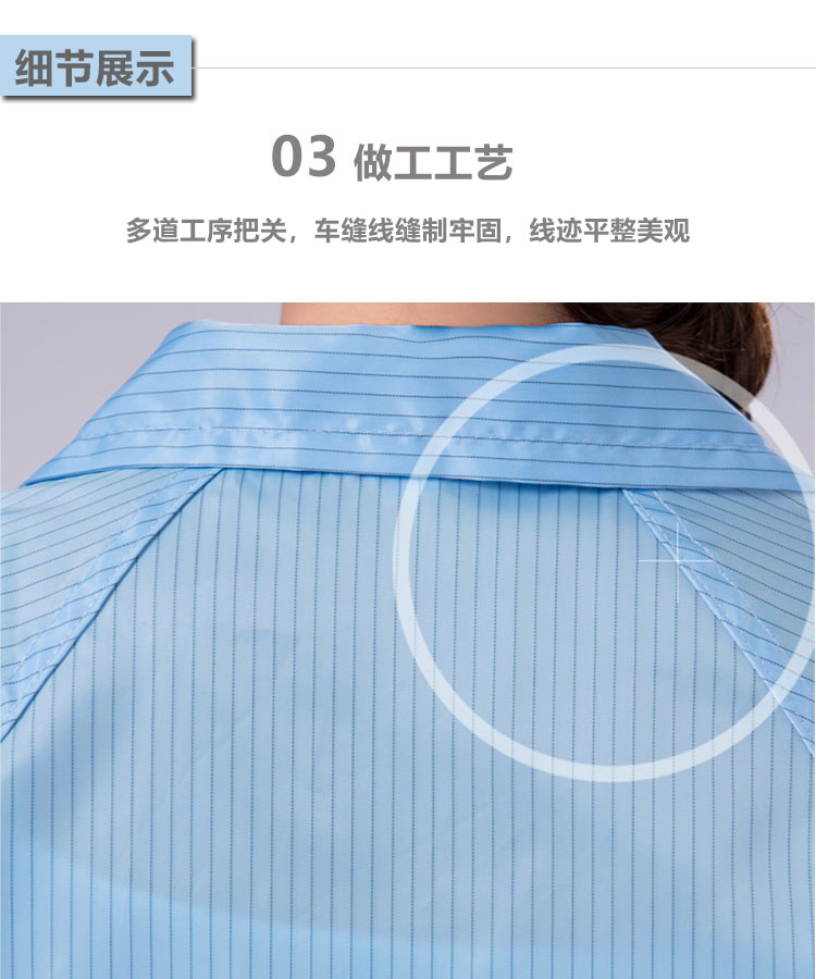 防靜電無塵大褂是由專業(yè)的防靜電面料制作,采用滌綸長(zhǎng)絲與高性能導(dǎo)電纖維編織而成,具有高效、永久的防靜電、防塵性能,能有效釋放人體靜電荷,從而滿足高級(jí)別無塵環(huán)境的要求。廣泛應(yīng)用于電子電器、儀器儀表、食品、生物制藥、實(shí)驗(yàn)室等無塵車間及產(chǎn)線。