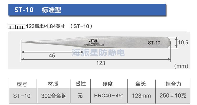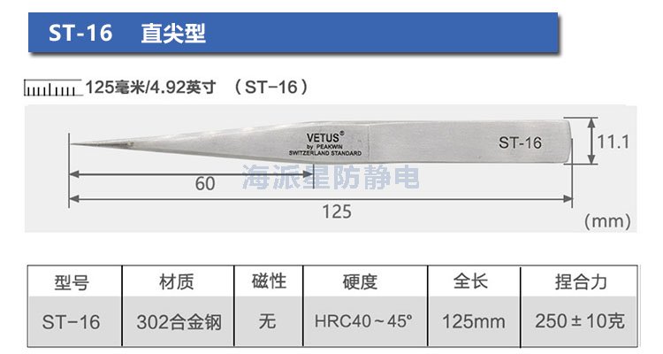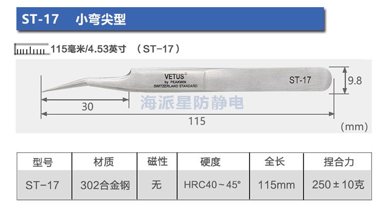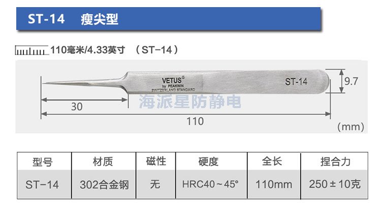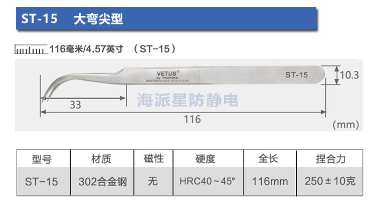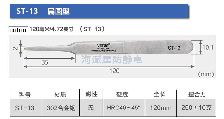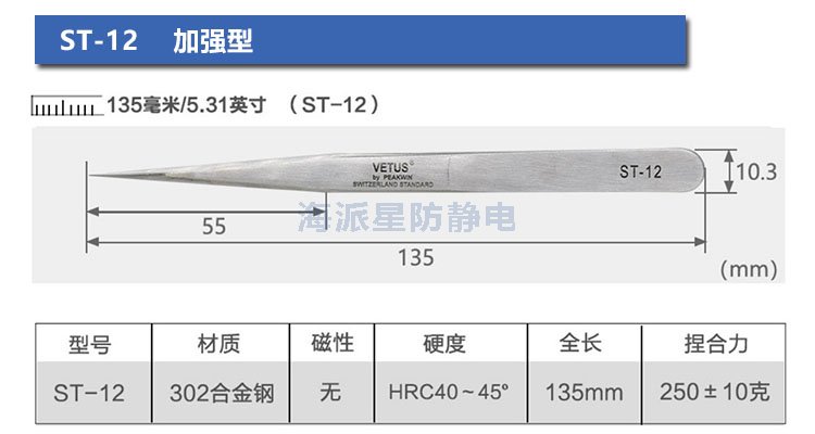 | ST-12 | 鑷子長度更長,前端寬度更寬,適合夾取電路板等比較用力場合 | ||||||
