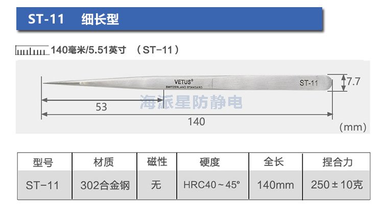 | ST-11 | 鑷子更加細(xì)長,適合在狹小空間更換精密元件 | ||||||