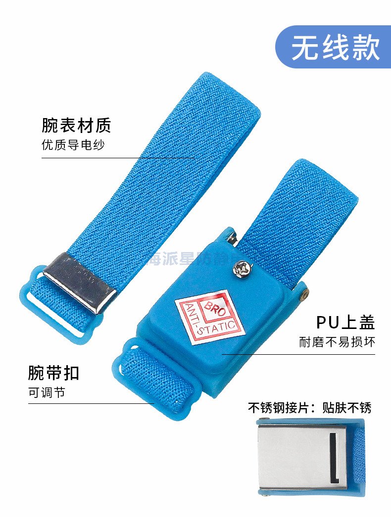 防靜電手腕帶,也叫防靜電手環(huán),是一種配戴于人體手腕上,泄放人體聚積靜電電荷的器件。它分為有線型、無線型,有金屬環(huán)和橡筋導(dǎo)電絲混編環(huán)。它由防靜電松緊帶、活動(dòng)按扣、彈簧軟線、保護(hù)電阻及夾頭組成,松緊帶的內(nèi)層用防靜電紗線編織,外層用普通紗線編織,可有效保護(hù)零阻件,免于受靜電之干擾,用以泄放人體的靜電。